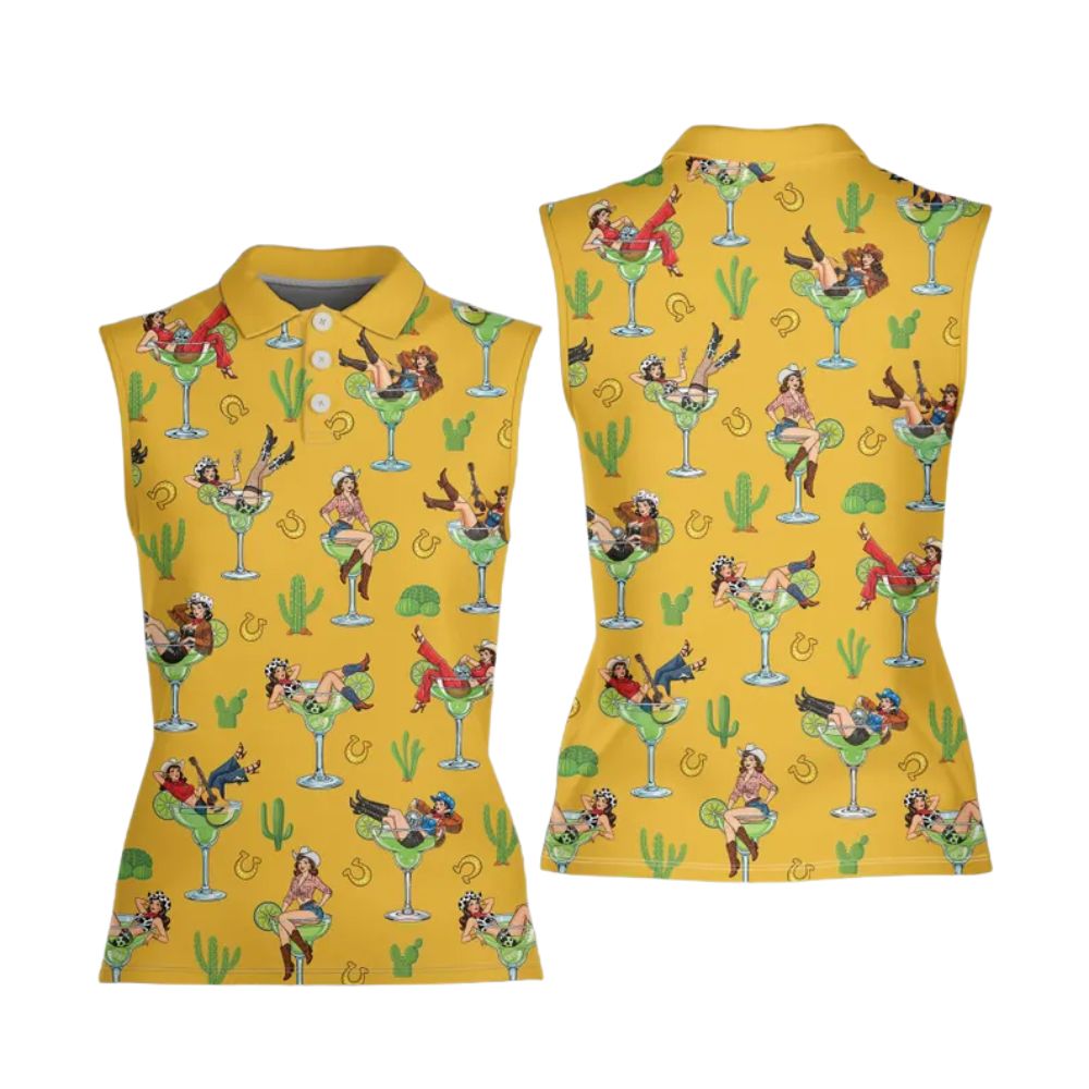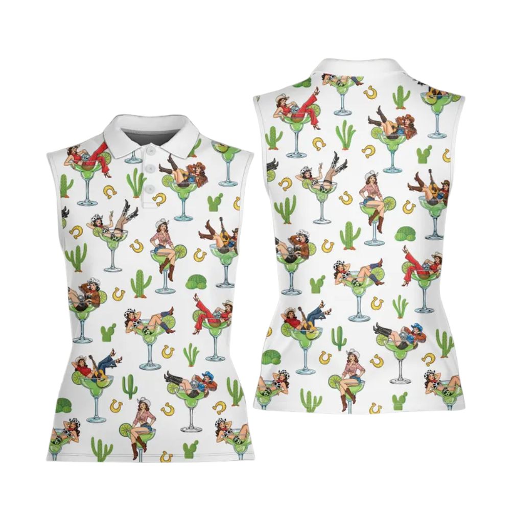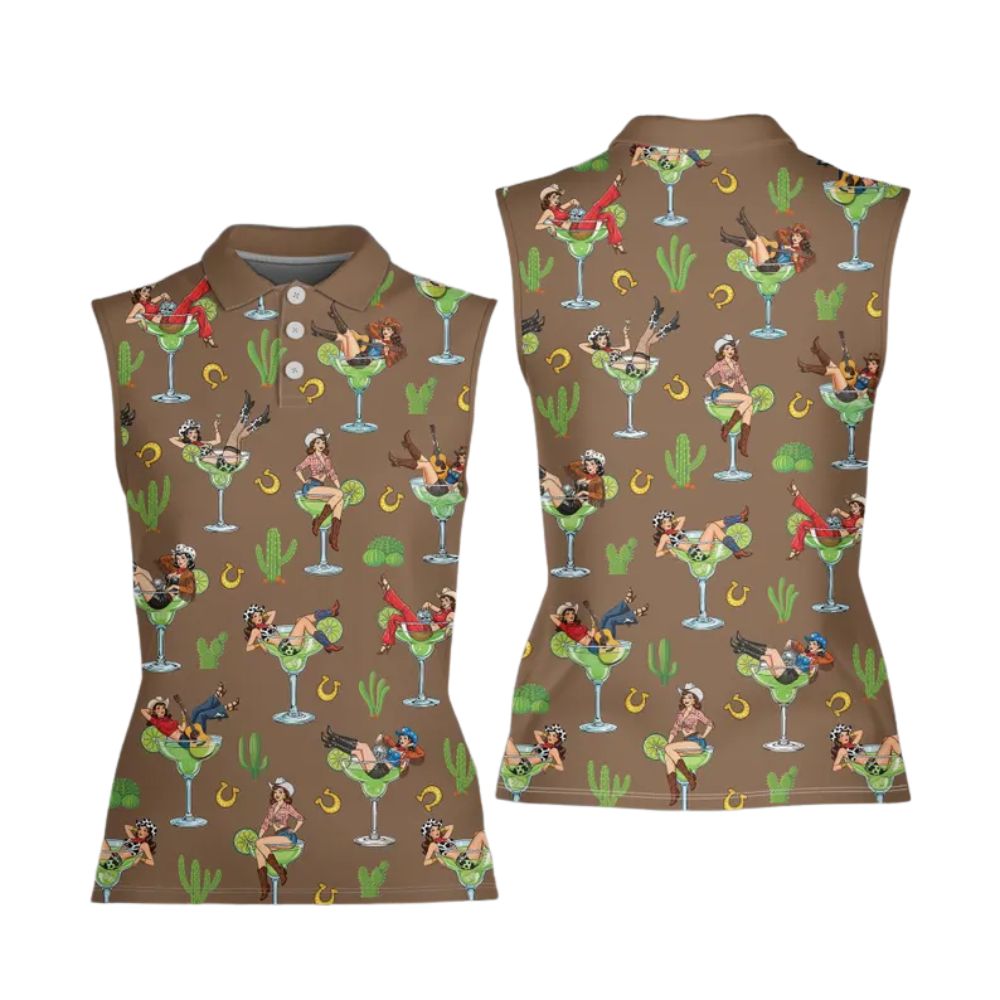 Margarita Cocktail Cowgirl Sleeveless Golf Shirt For Ladies, Western Golf Shirts Women GE0166
