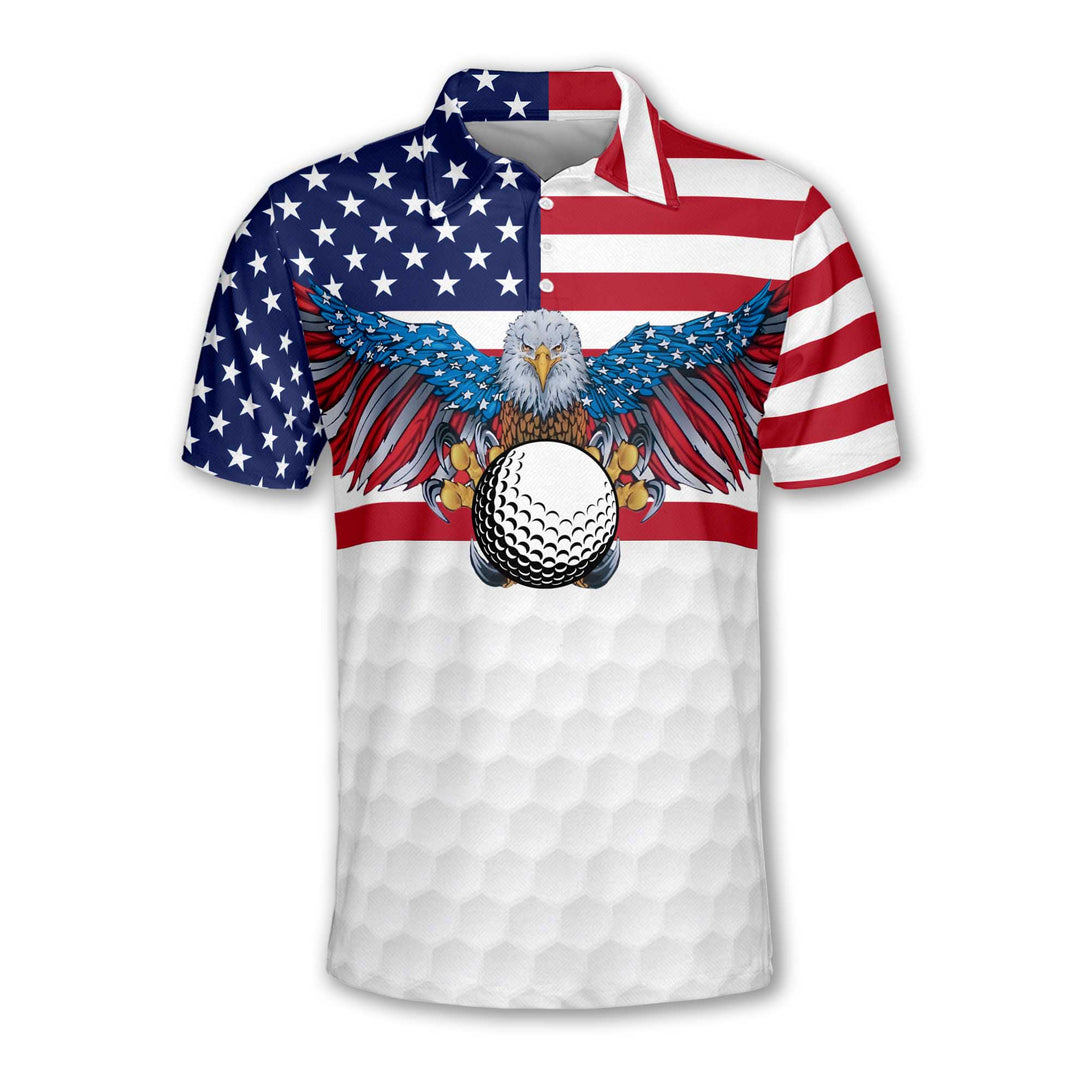 Mens American Eagle Flag Golf Polo Shirt, Men's Patriotic Golf Shirts GZ0080
