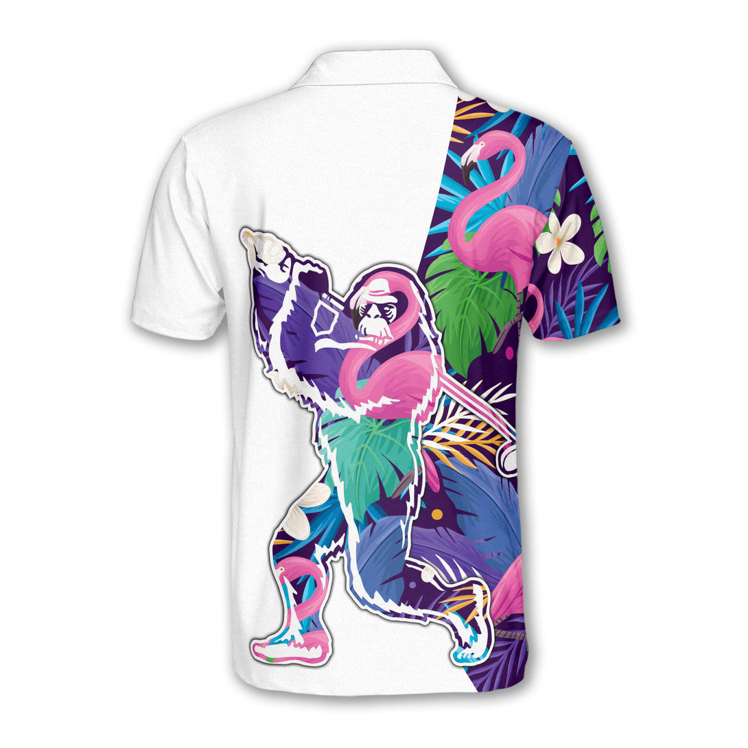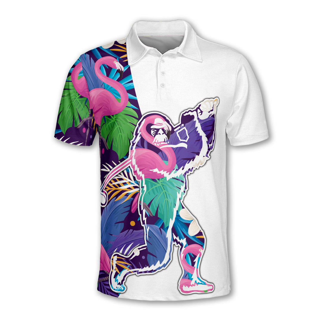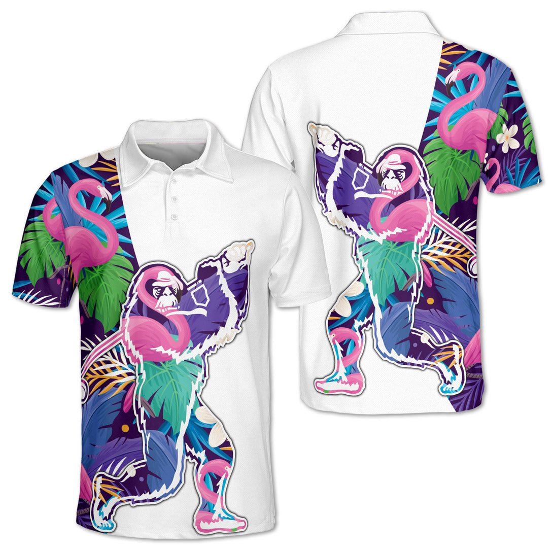 Bigfoot And Flamingo Golf Polo Shirts For Men, Bigfoot Golf Shirts GY2370