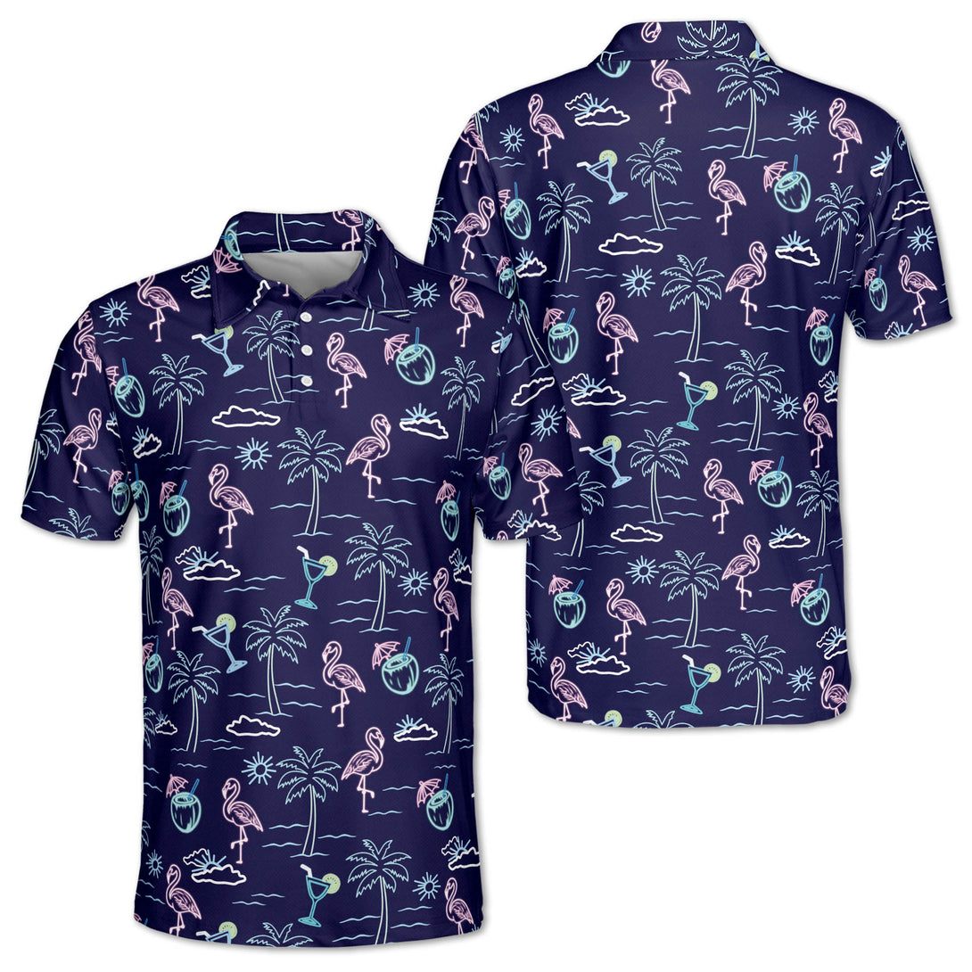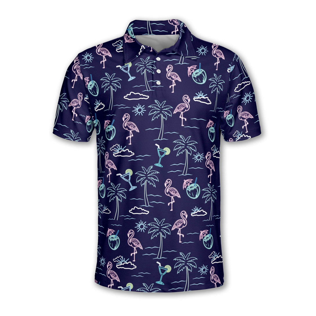 Men's Neon Flamingo Tropical Golf Polo Shirts, Flamingo Golf Shirt Mens GZ0072