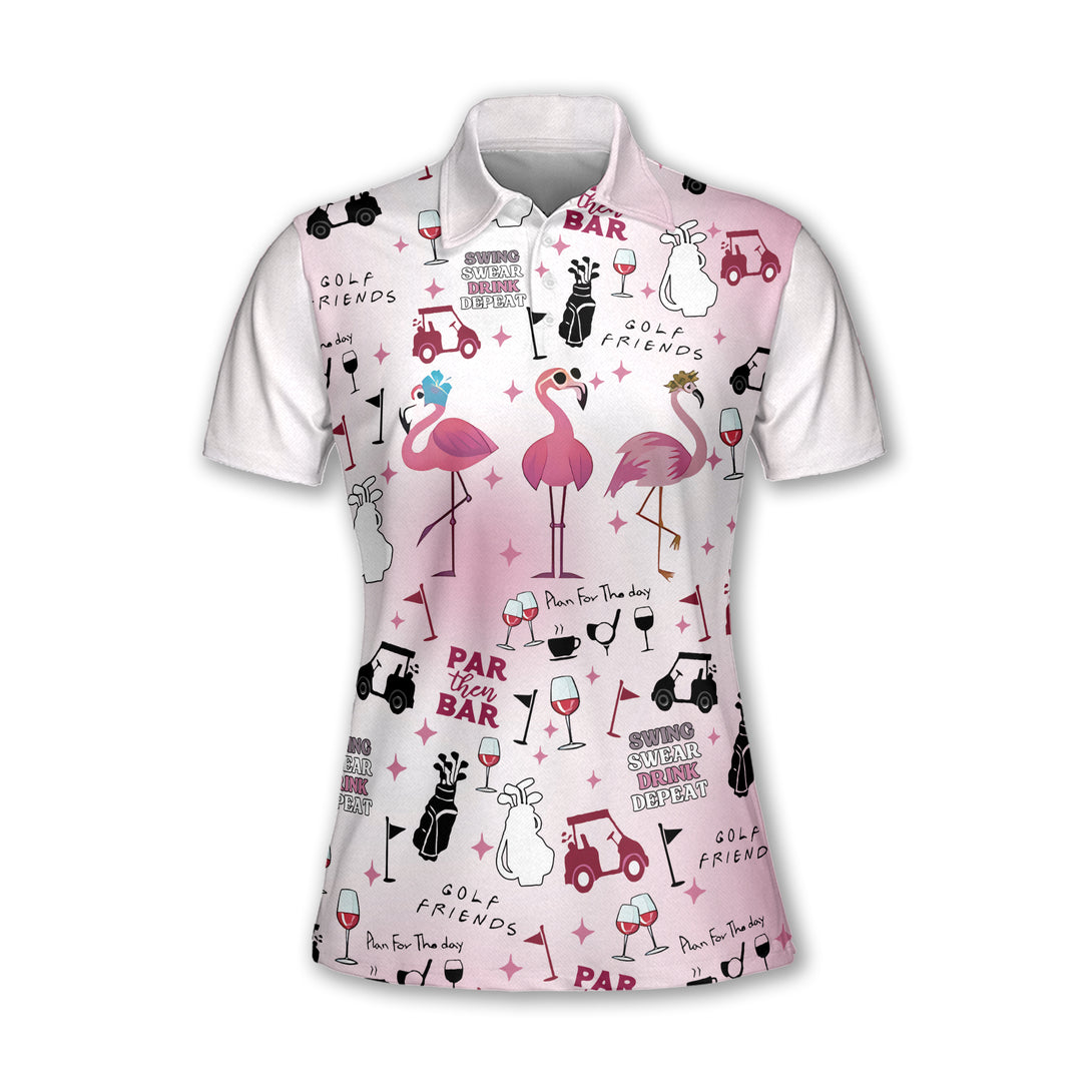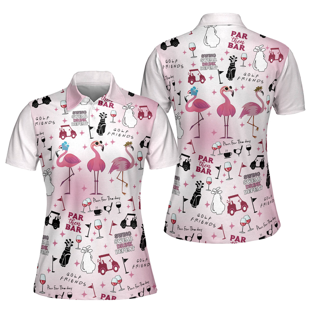 Par Then Bar Women's Flamingo Golf Polo Shirt, Funny Flamingo Pink Golf Shirt Women's GZ0020