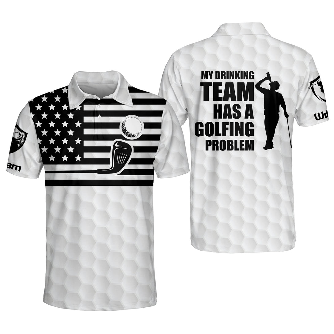 My Drinking Team Has A Golfing Problem Custom Black Golf Polo Mens, Custom Funny Golf Shirts For Men GM0020