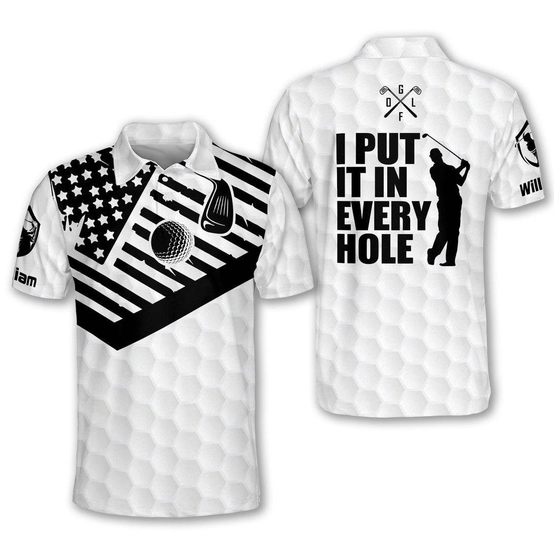 I Put It in Every Hole Custom Golf Polos For Men, Custom Men Funny Black Golf Shirts GM0023