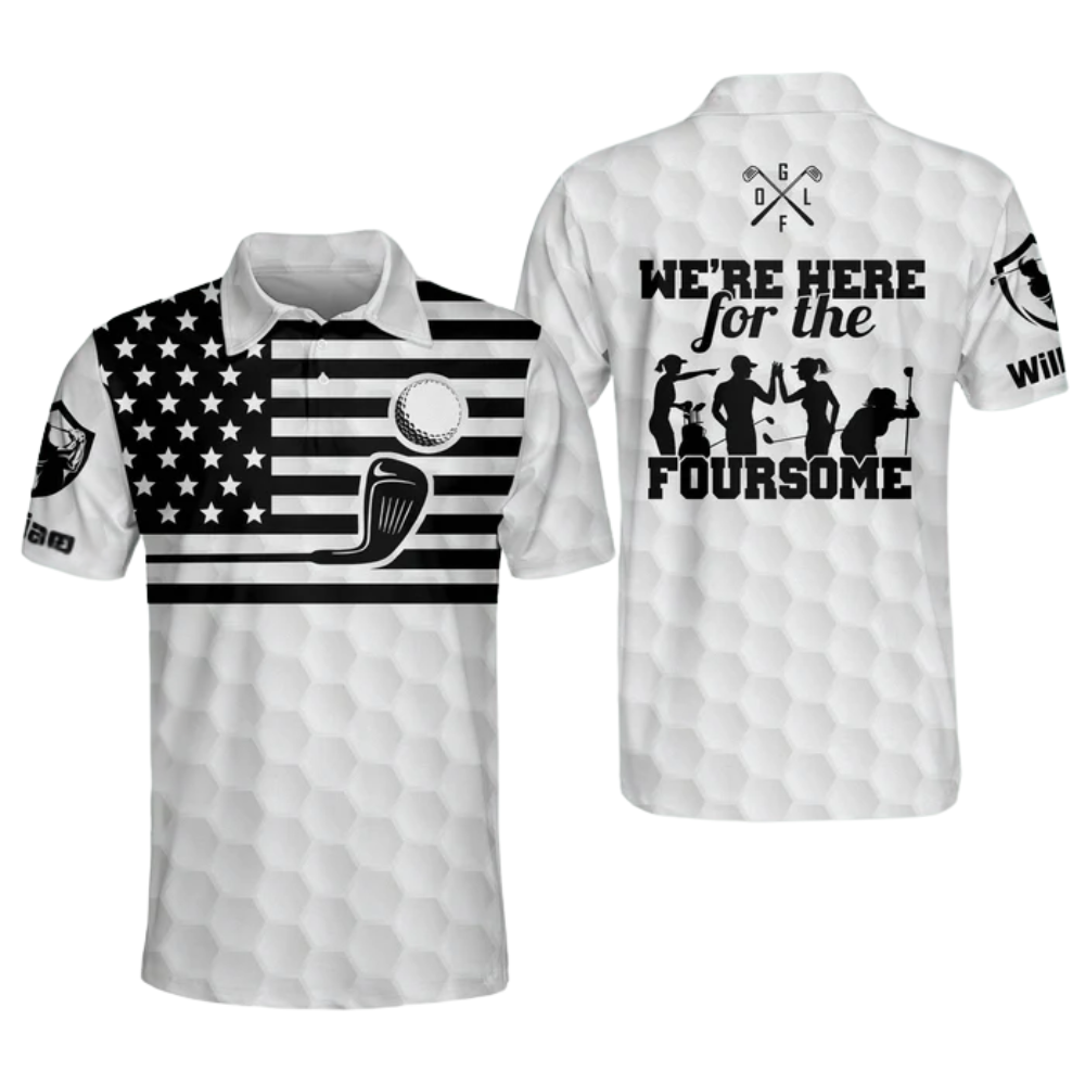 We're Here For The Foursome Custom Mens Black Golf Polo Shirt, Custom Funny Golf Shirts For Men GM0252