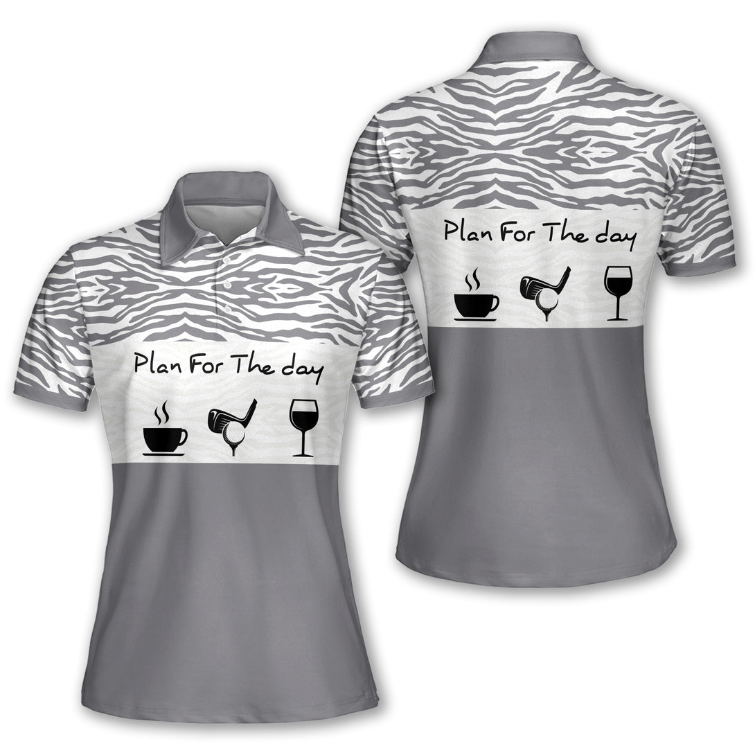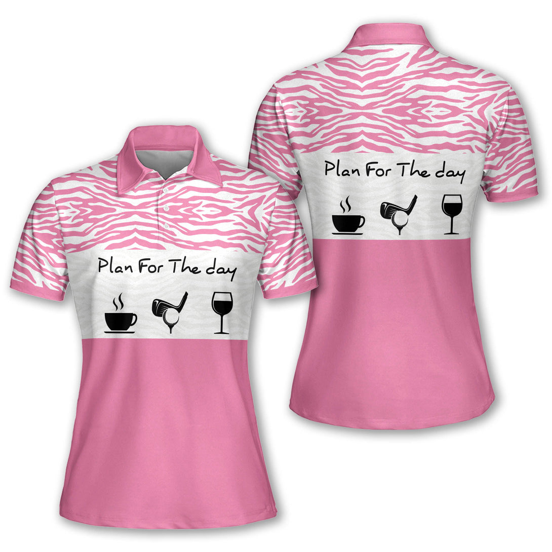 Plan For The Day Pink Golf Polo Shirt For Women, Women's Funny Zebra Golf Shirts I0295