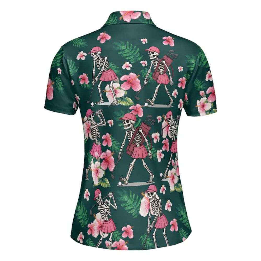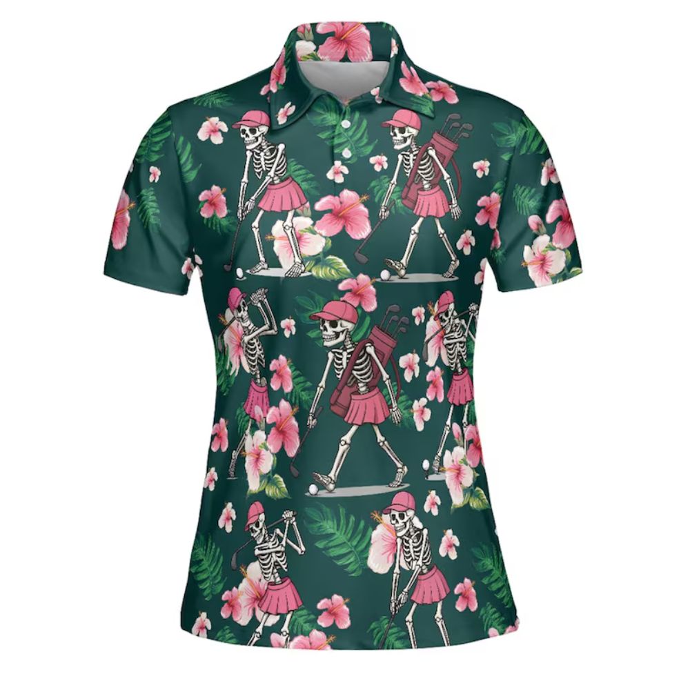 Skull Tropical Golf Polo Shirt For Women, Skull Golf Shirt For Ladies GE0172