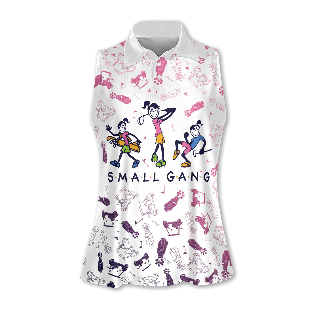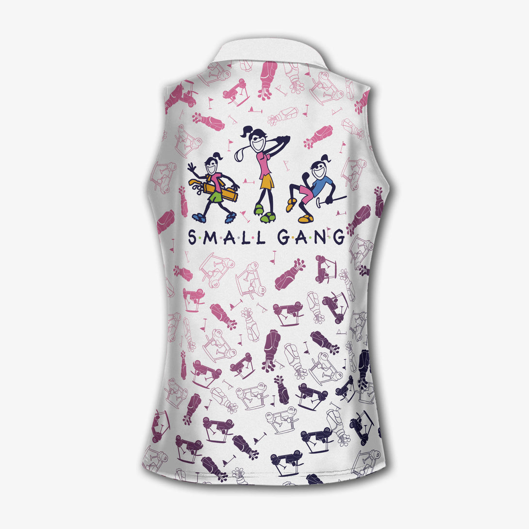 Small Gang Womens Stick Figure Sleeveless Golf Shirts, Matching Team Golf Shirts Ladies GY0370