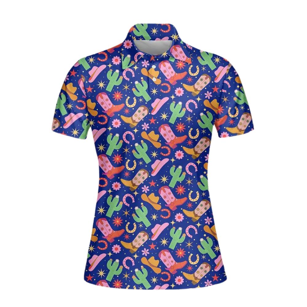 Western Catus Golf Polo Shirt For Women, Cowgirl Golf Shirts GE0163