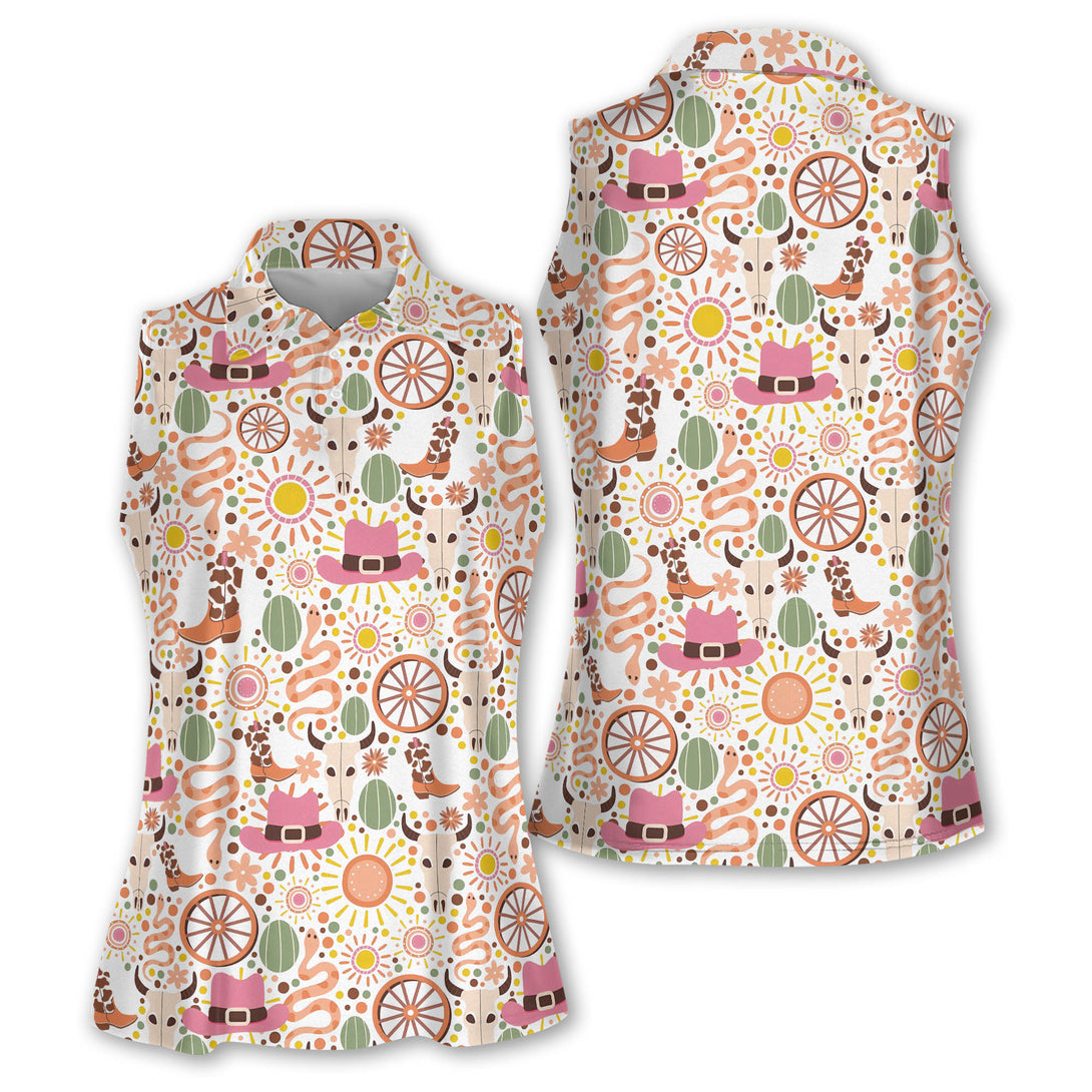 Western Golf Sleeveless Shirts Women, Cowgirl Golf Shirts GE0009