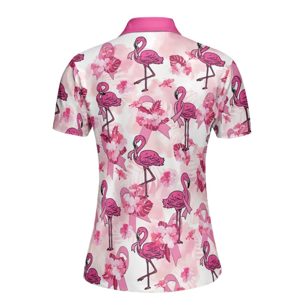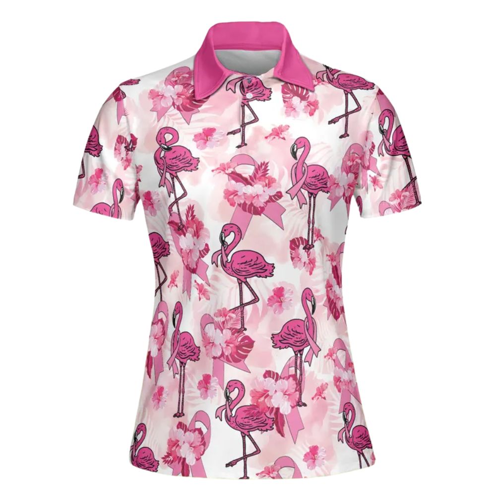 Women Flamingo Pink Ribbon Golf Polo Shirt, Breast Cancer Awareness Golf Shirts GE0170