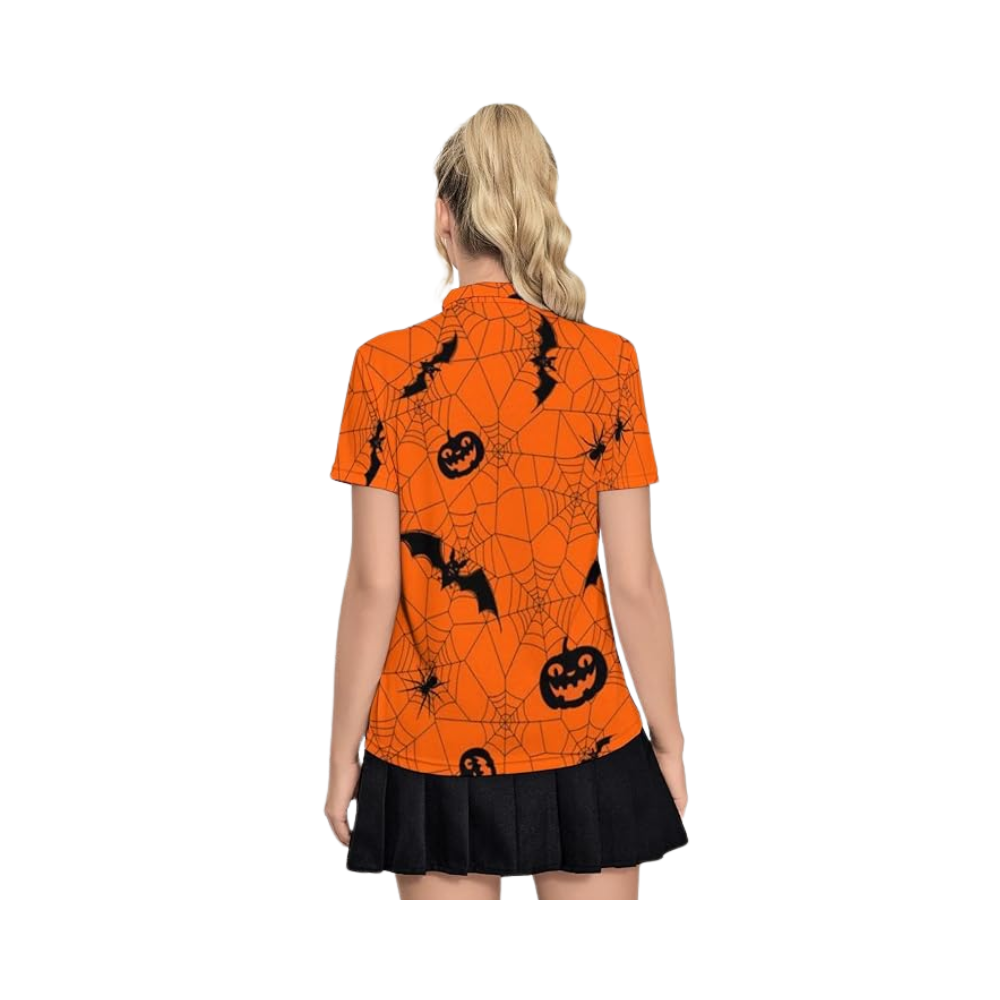 Womens Bat and Pumpkin Halloween Orange Golf Polo Shirts, Women's Halloween Golf Shirt GZ0102